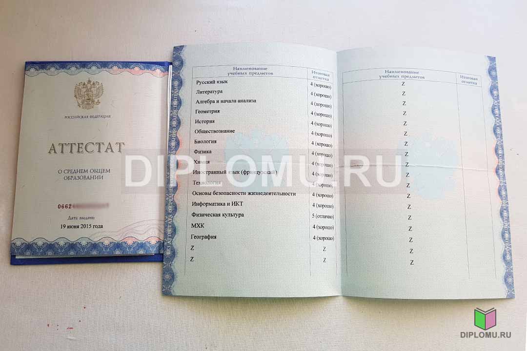 На нашем сайте Вы можете купить аттестат об окончании любой школы России в период с 2014 по 2020 года. Этот аттестат выглядит точно также, как и современный бланк, но не имеет QR-кода. Ниже представлены фото документов. Наши специалисты заполнят бланк по всем правилам, как в школе, заверят «мокрой» печатью и подписью директора.